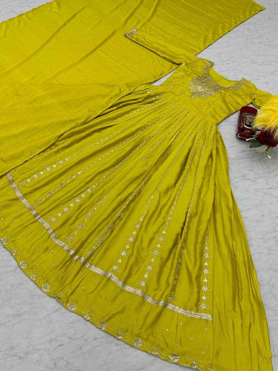 | Name : | Pc 435 Yellow Chinon Embroidery Sequence Gown |